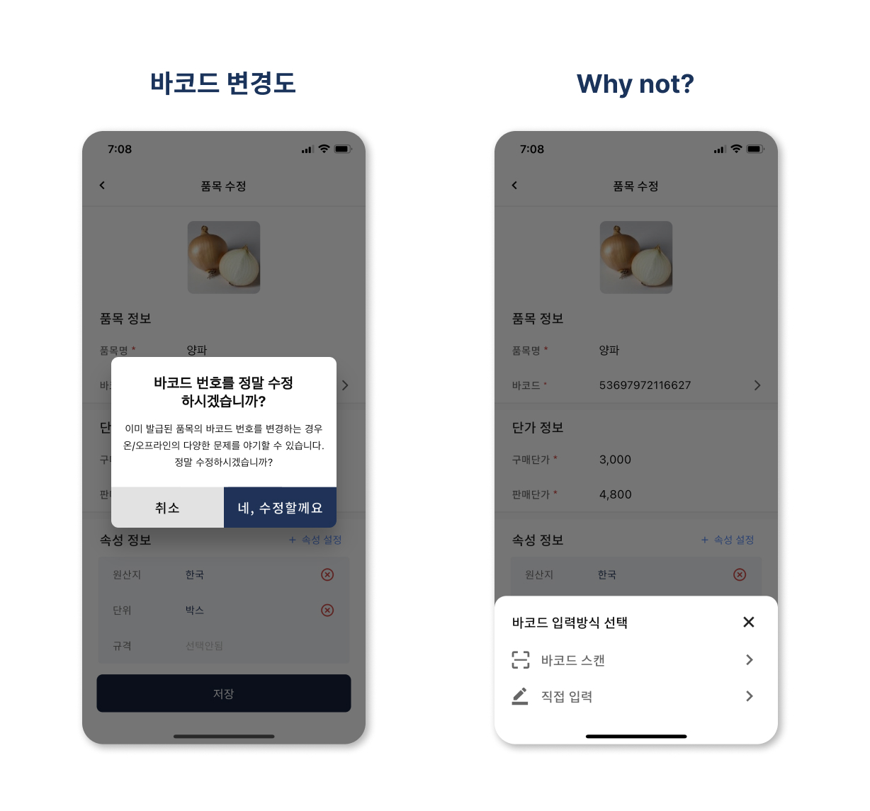 매우 주의깊게 변경해야하지만, 한번 등록된 바코드 번호를 새로운 바코드 번호로 교체할 수 있도록 하였습니다.