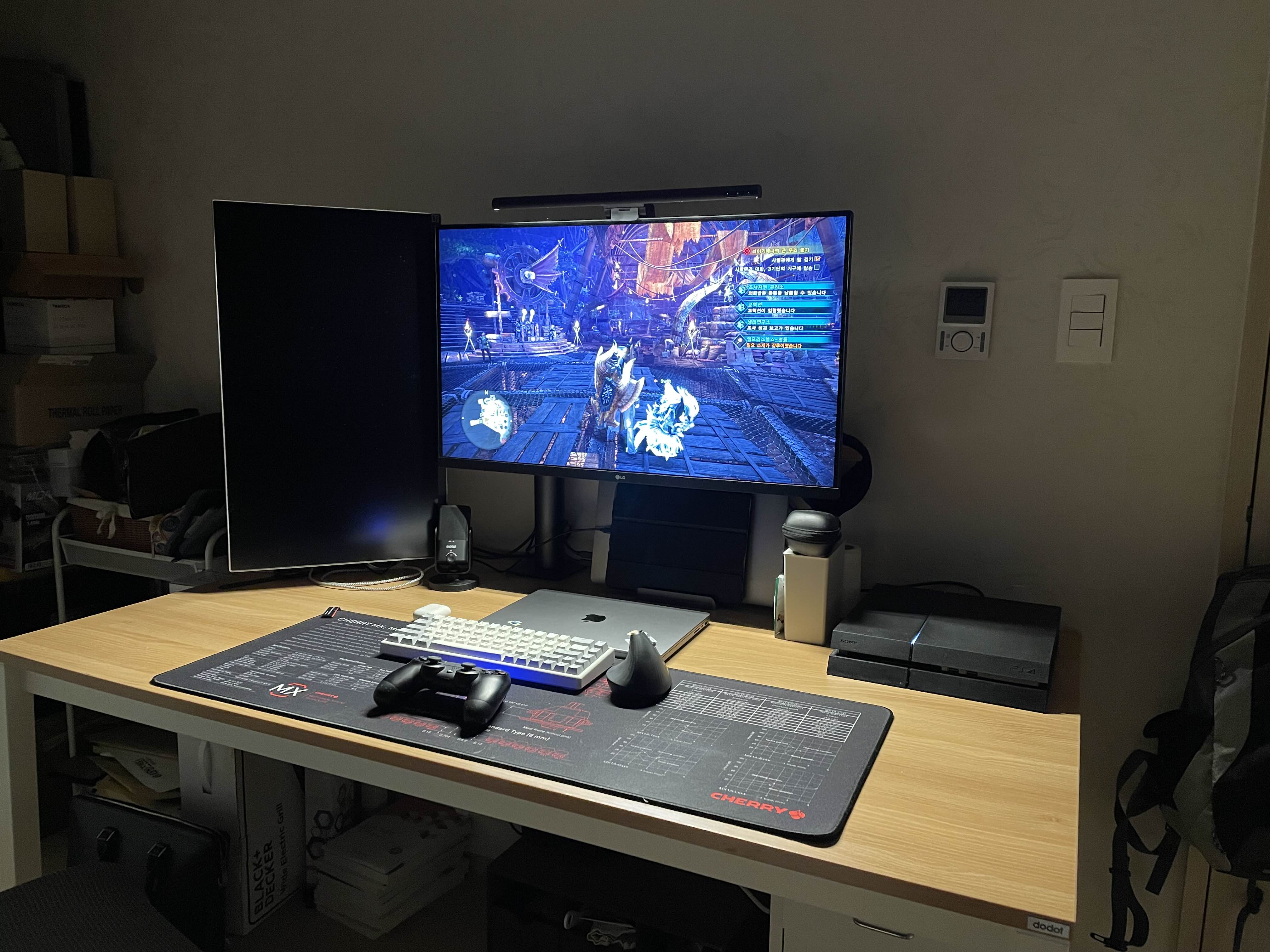 양옆으로 와이드한 여유공간이 많이 나오니깐 데스크테리어용 오브제를 올려놓을 수도 있게 되더군요.