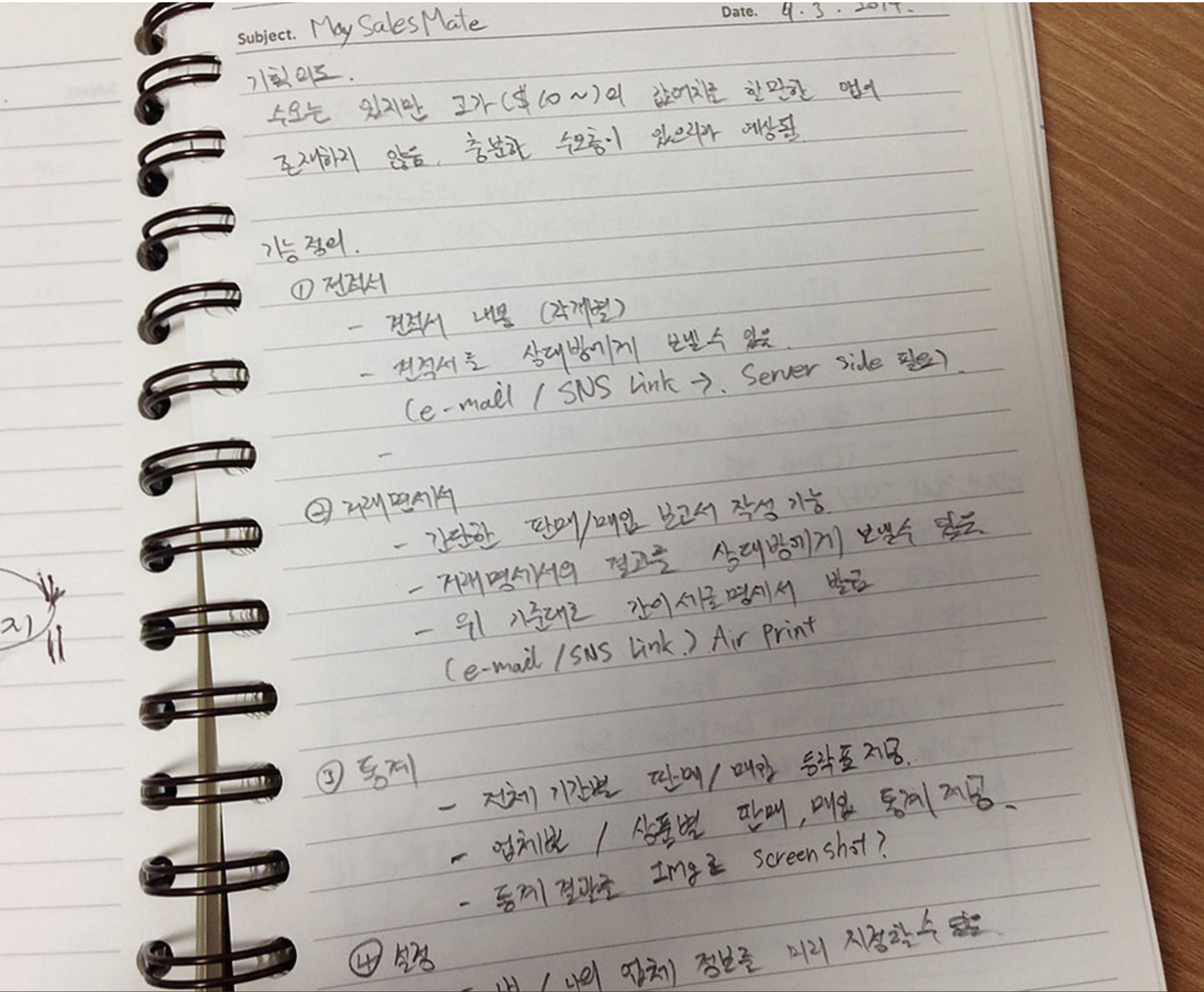 처음에 기획했을때의 이름은 MySalesMate 였는데, 앱을 개발하다보니 좀더 비젼을 키워서 Salesbook 이라고 이름짓게 되었습니다.