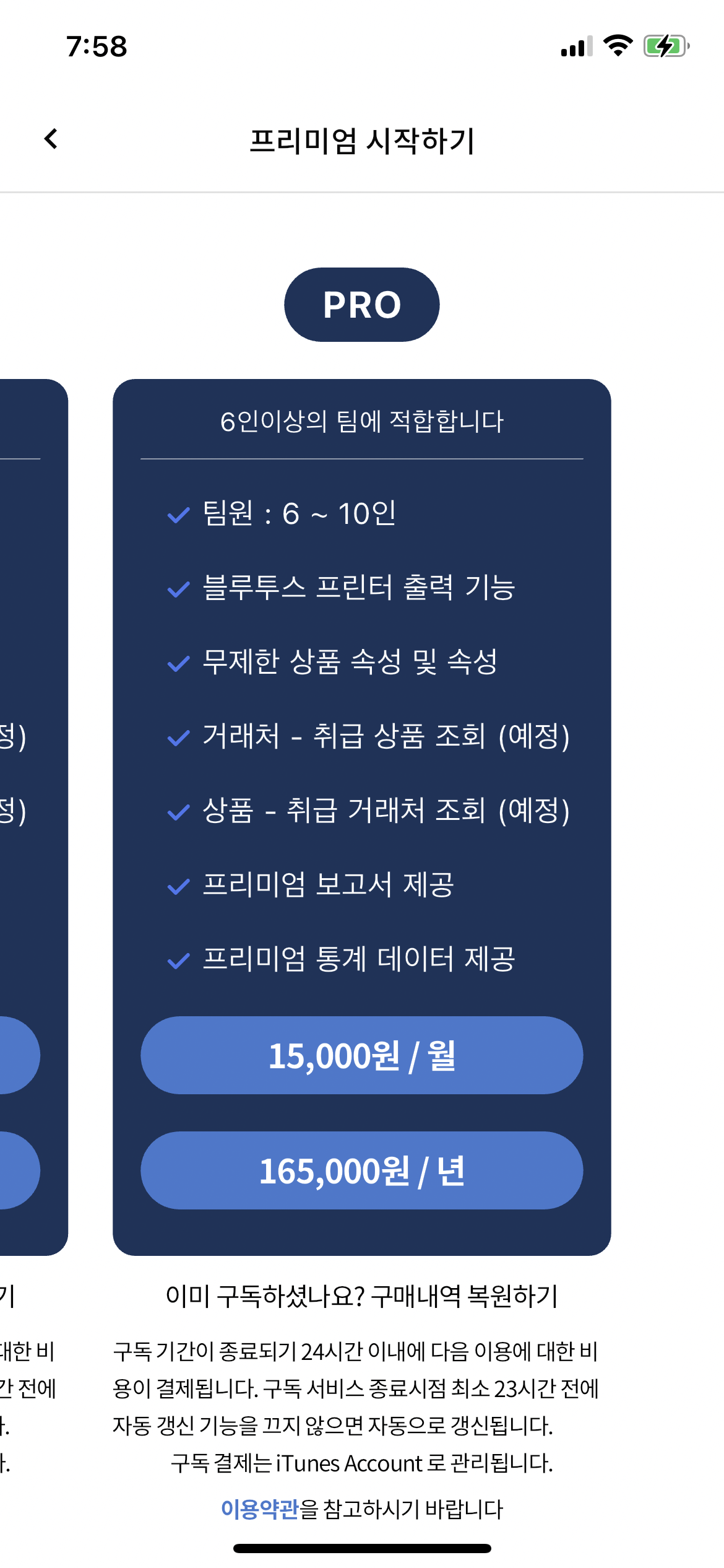 각종 프리미엄 보고서나, 프리미엄 통계, 블루투스 프린터 기능 등을 무제한으로 이용할 수 있습니다.