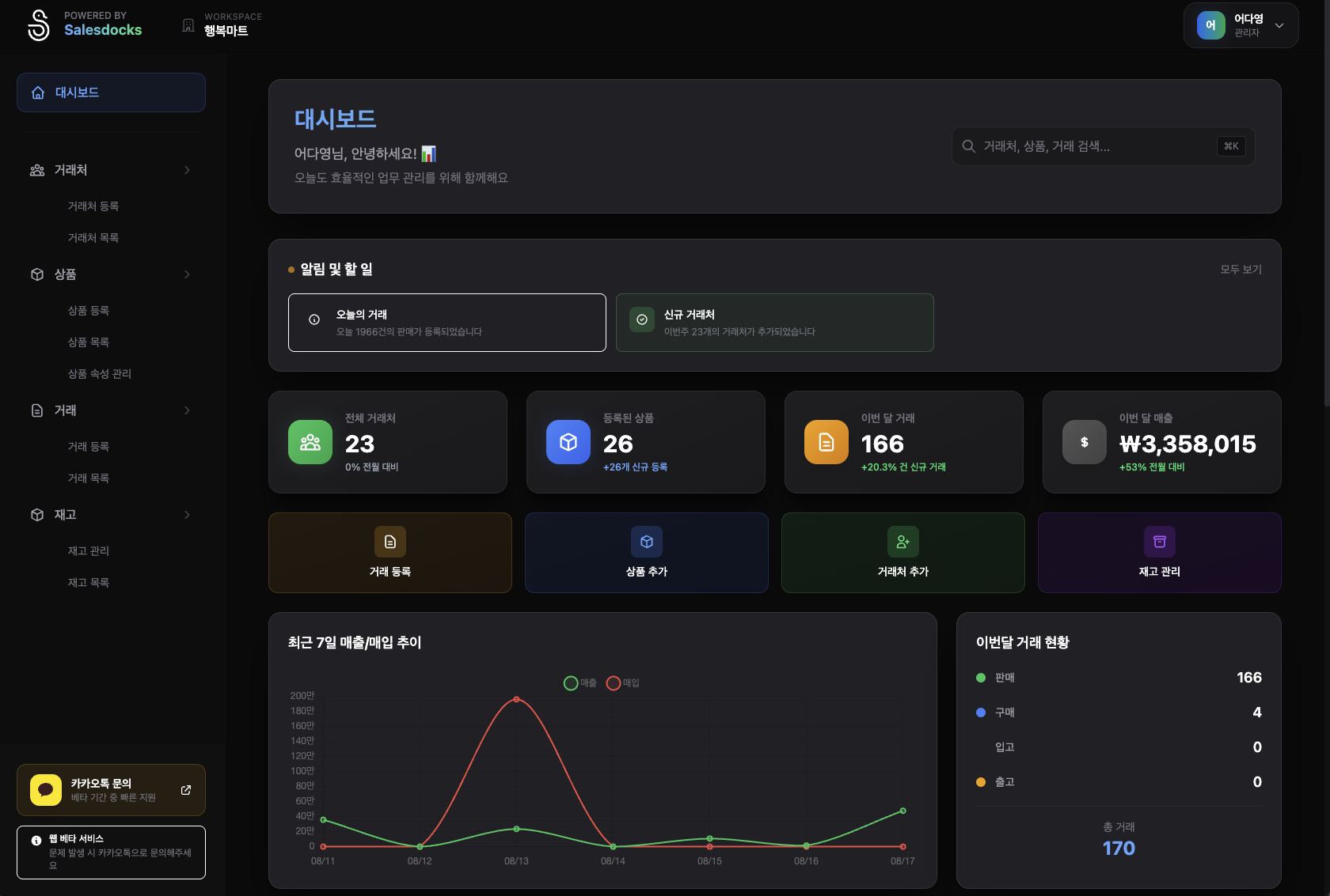 - 사용 중 불편하신 점이나 제안사항은 언제든지 알려주세요. 여러분의 피드백이 SalesDocks를 성장시키는 가장 큰 힘이 됩니다.