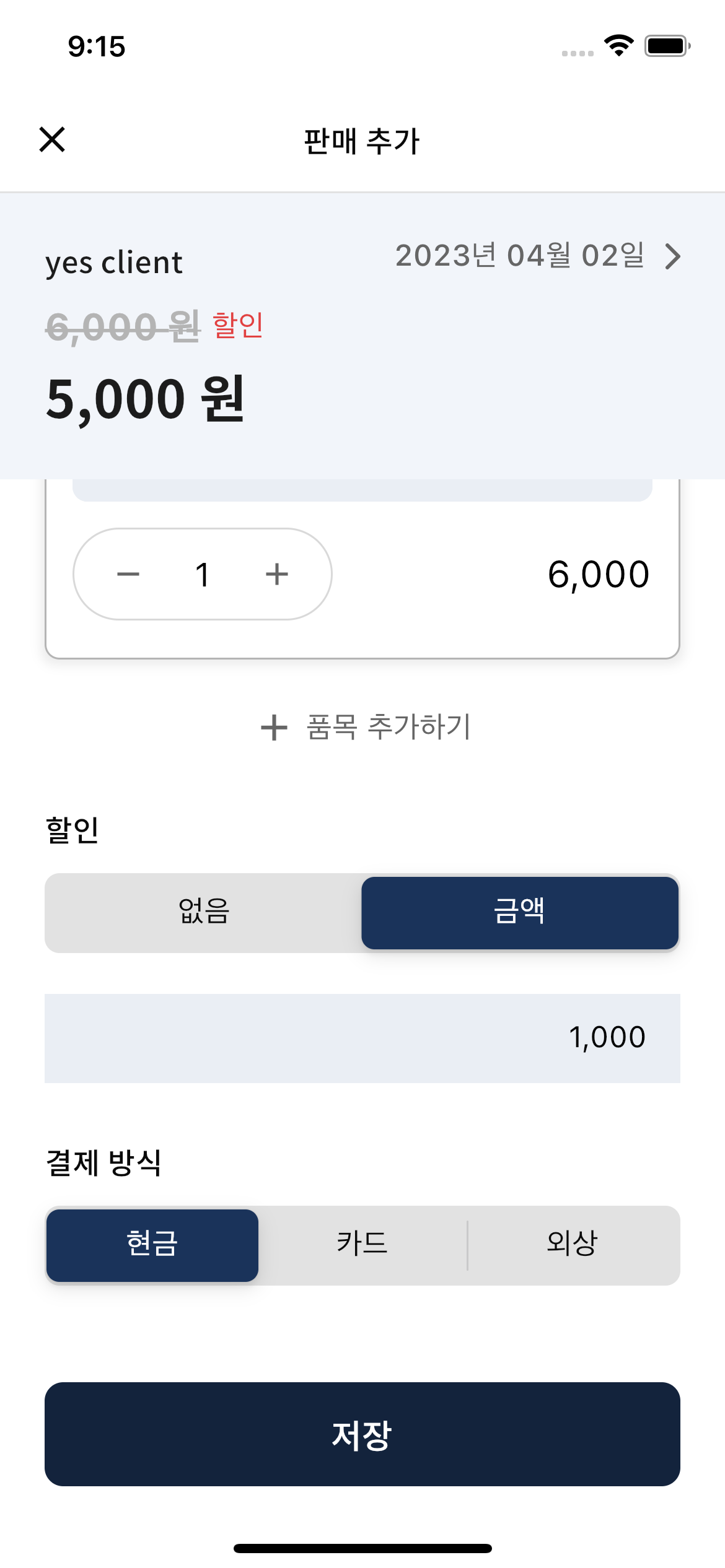 그래서 결제방식 탭을 이용해서 현금 / 카드 / 외상 을 직접 선택할 수 있도록 했습니다.
