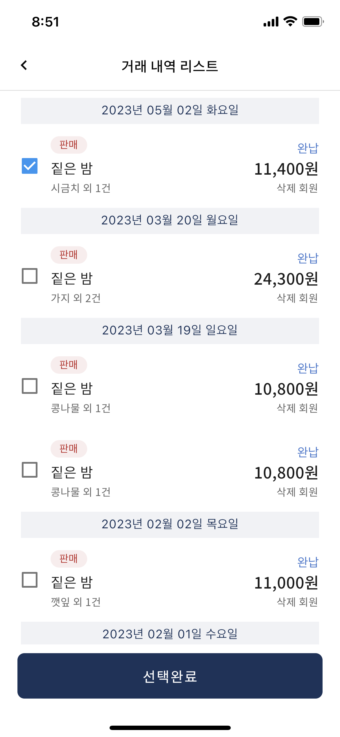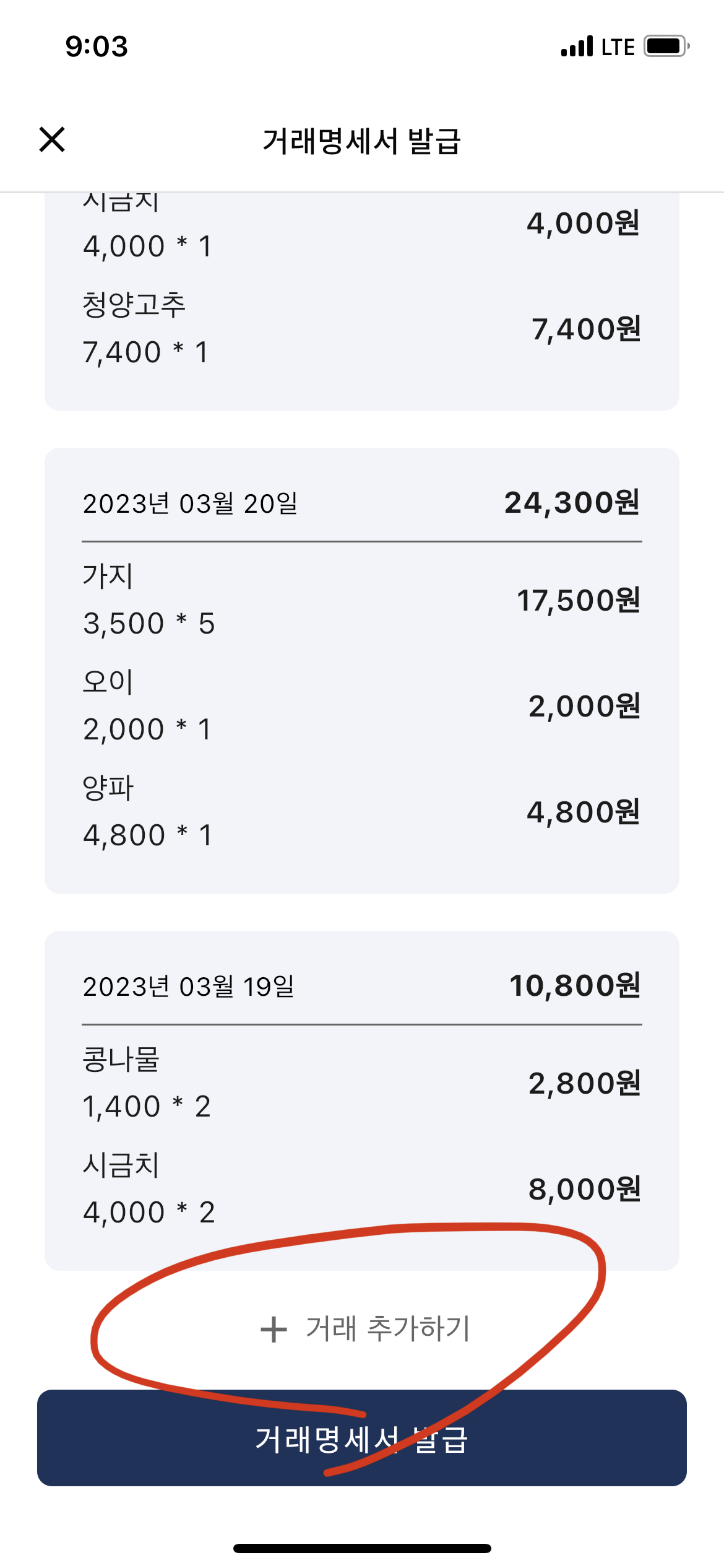 거래추가하기 버튼을 눌러서 다른 거래기록들도 묶어서 거래명세서를 발급할 수 있게 되었습니다.